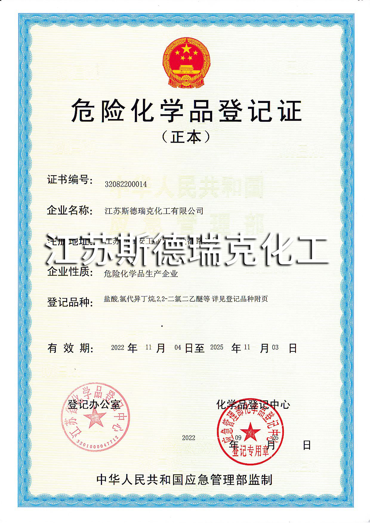 江蘇斯德瑞克化工有限公司成立于2002年,是一家集研發、生產和銷售一體化的“國家高新技術企業”,F有員工100多人,其中科技人員占20%以上;位于江蘇省淮安市鹽化工園,占地面積180畝,建筑面積達38000多平方米。